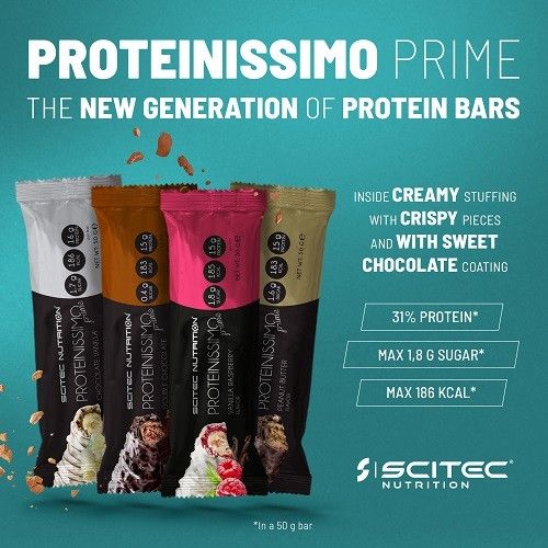 Time of the dry, tasteless protein bars is over! Proteinissimo Prime brings new light to the world of protein chocolate bars. You do not need to compromise between high protein content and delicious creamy flavor when you would like to eat a protein bar. This new generation protein bar is perfect for around the workout consumption, because of its nutritional values, but you can have it at any time during the day as a guilt free dessert.